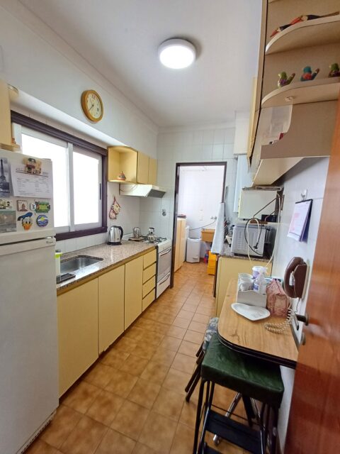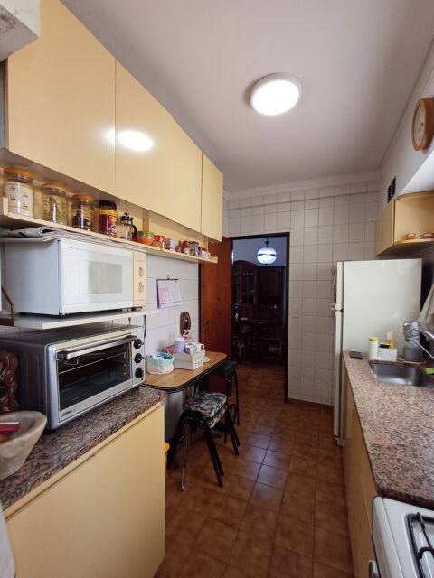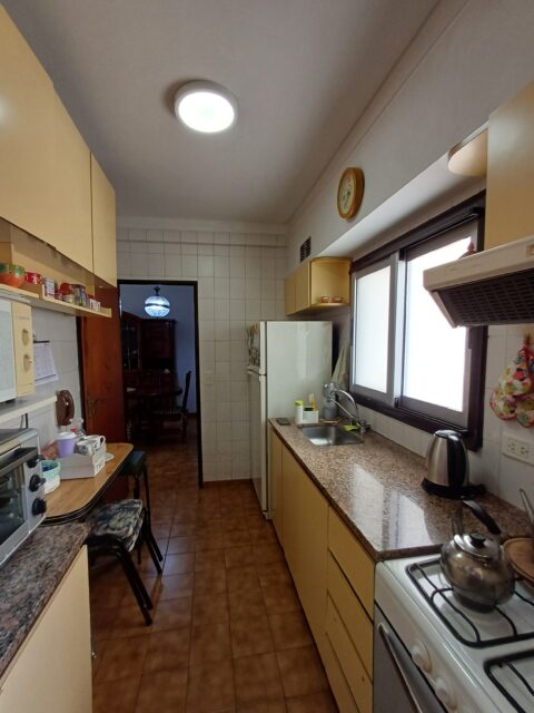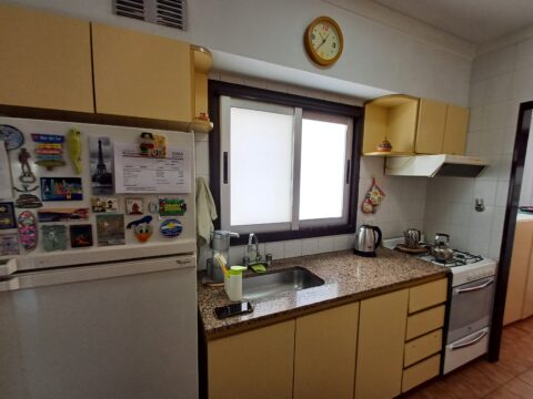 Cocina con alacenas y bajo mesada de gran capacidad de guardado. Ventilación a pulmón abierto.( 2m. x 3mm.)