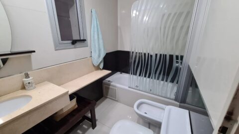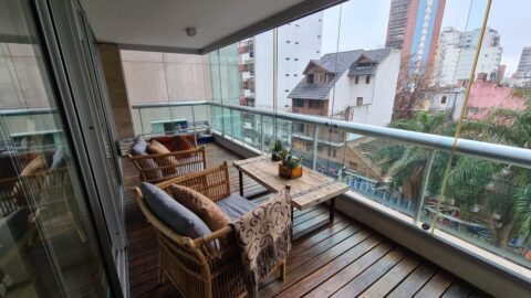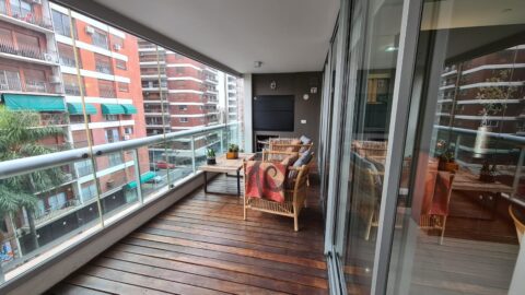 Al ingresar, un hall privado conduce a un amplio living-comedor (pisos de porcelanato), conectado con un balcón terraza corrido al frente, cerrado con blindex y con parrilla propia. La cocina-comedor diario, totalmente amueblada y con amplios ventanales, se complementa con un lavadero totalmente independiente.